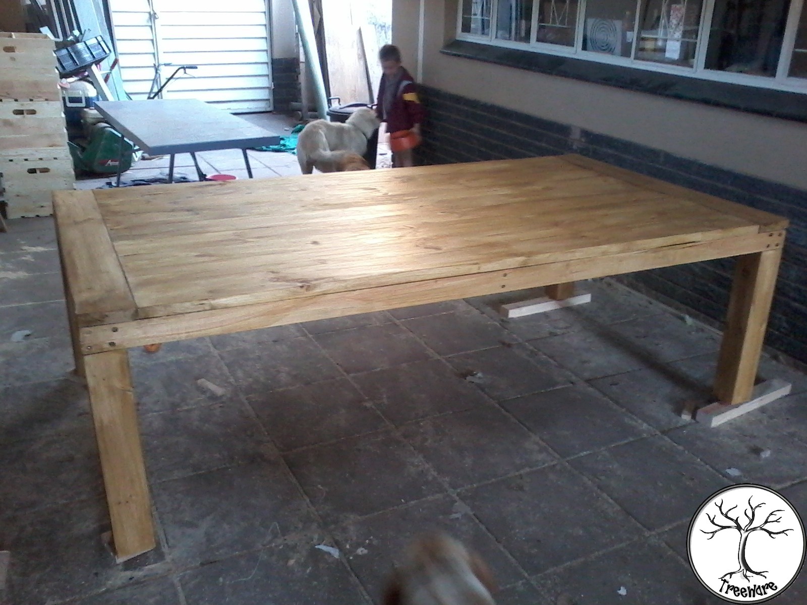 The rustic pine table was an amazingly large project to work on – so large, in fact, that it did not fit into our workshop, we had to build, assemble and finish it outside.