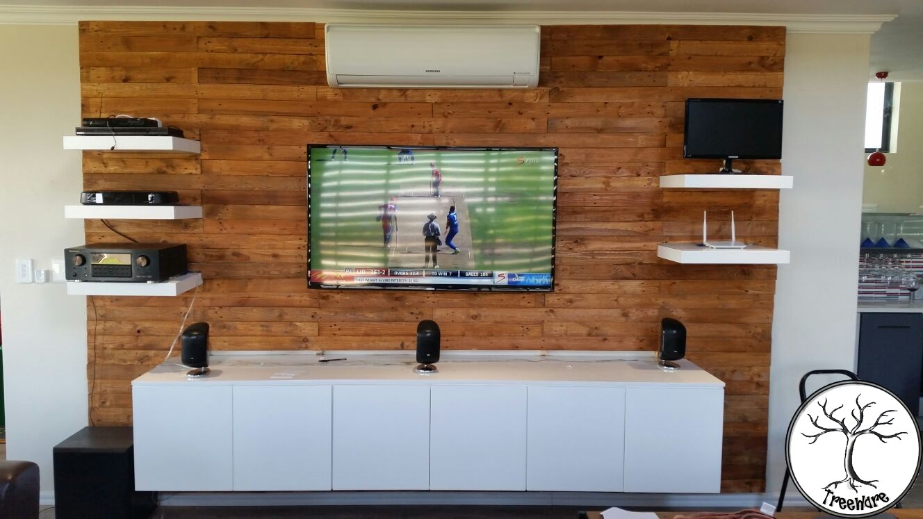 We recently used some recycled wood to clad a client’s multimedia wall, hiding all his cables. We also added some floating shelves to house some of the audio equipment. We made sure that the panels above the shelves and cabinet… Continue Reading